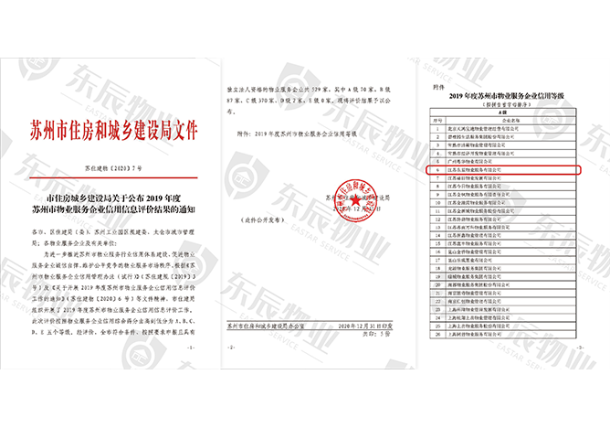 2019年度蘇州市物業服務企業信用等級A級